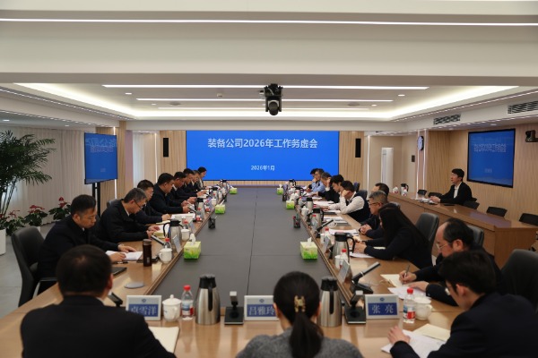 1月9日,装备公司召开2026年工作务虚会,传达学习集团2026年工作会暨职工代表大会、安全工作会精神,总结工作,分析形势,统一思想,凝聚共识,谋划安排2026年工作。郑伟立主持会议并讲话,张洪军围绕全年重点工作进行安排,吴凤东、李思朋、王璇、袁智、朱宝琪、杜娟分别结合分管工作进行发言,各部门主要负责人立足全局摆问题、谈思路,以务虚促务实。